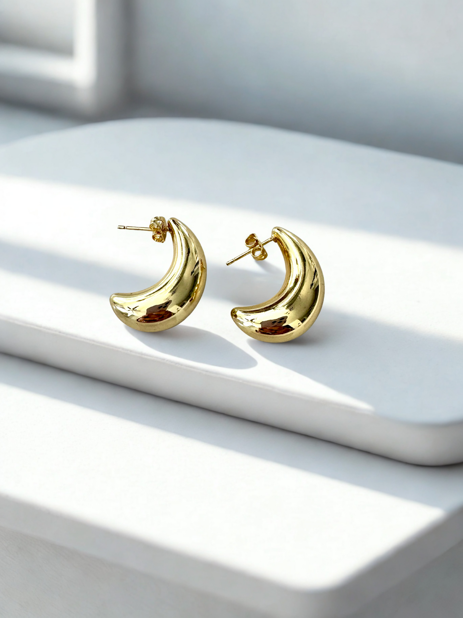 Aretes dorados media luna. Un toque minimalista y elegante para realzar cualquier look.