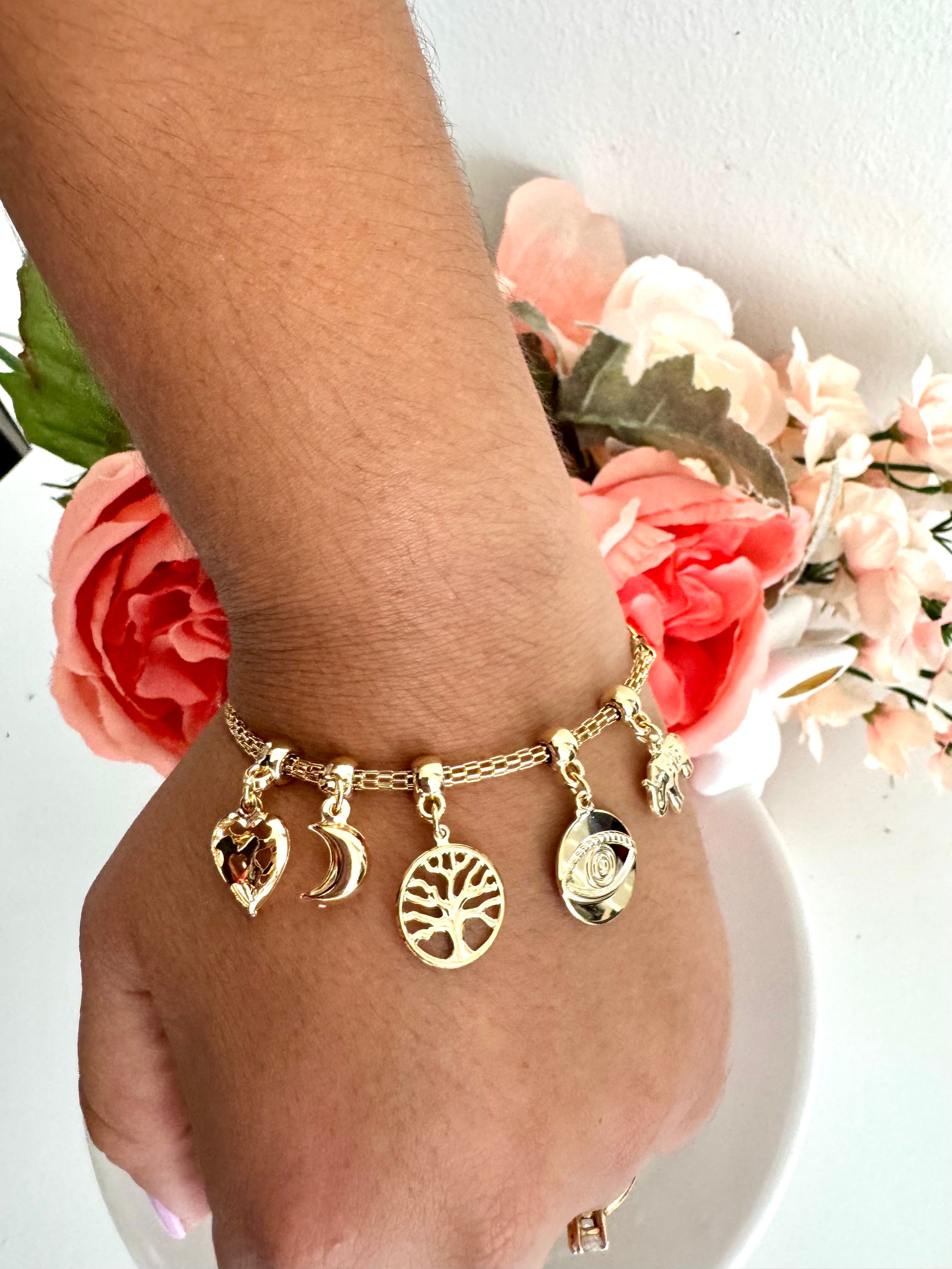 Pulsera de malla con dijes de la suerte – Bañada en oro de 18K