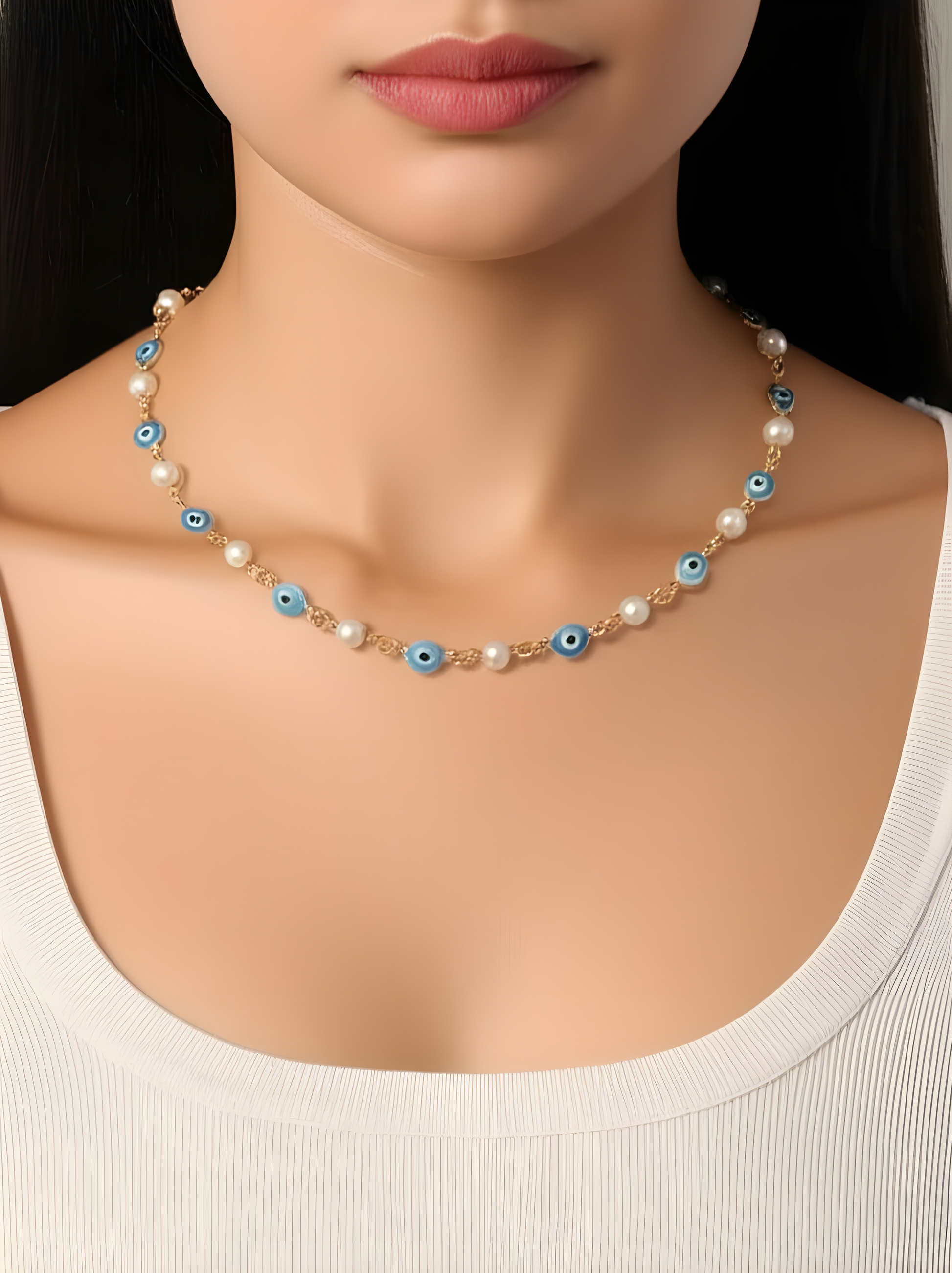 Choker delicado con dije de ojo turco en circonia cúbica, ideal para lucir elegante mientras atraes protección y buena energía.