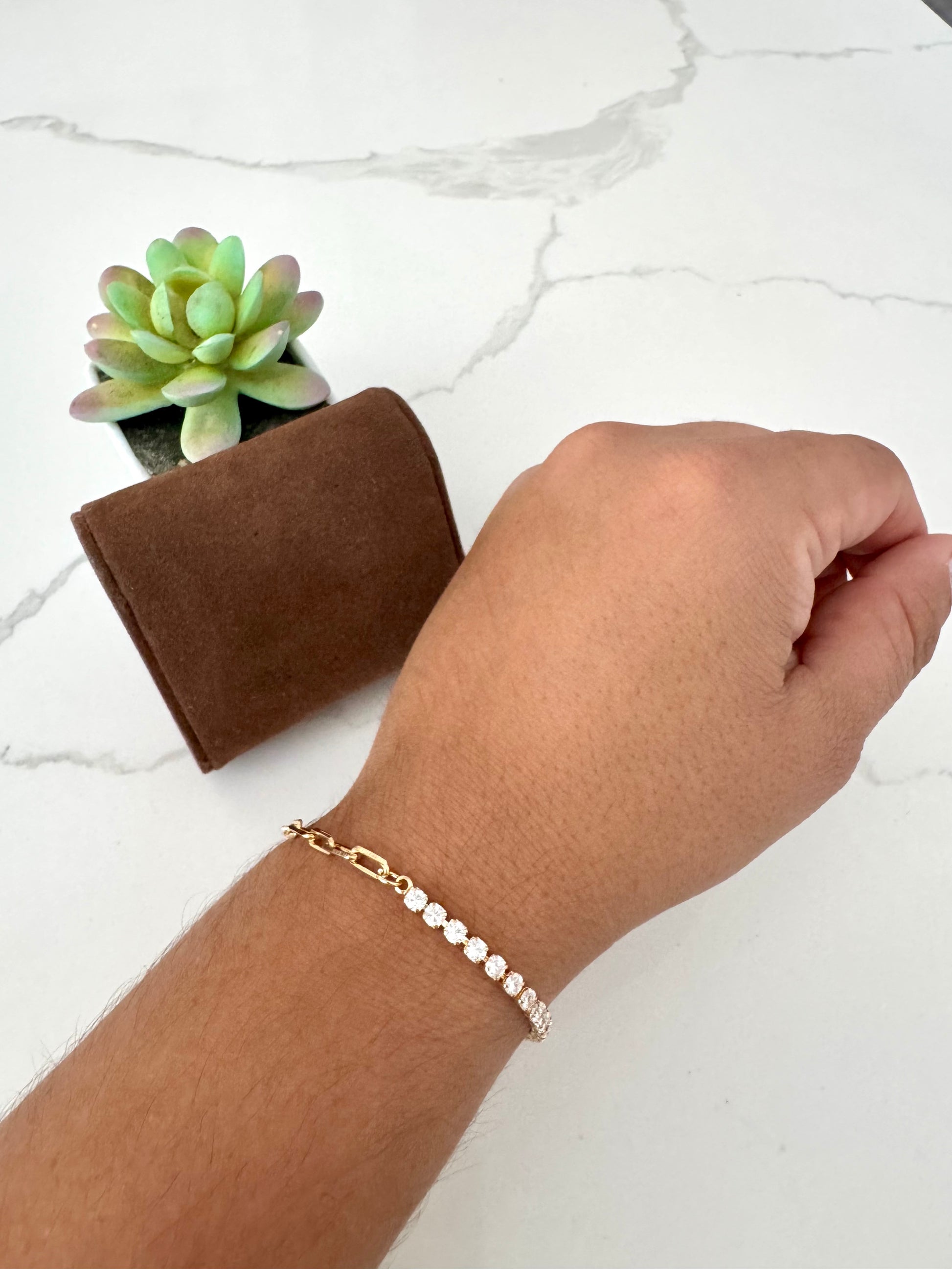 Pulsera de eslabones tipo clip con circonias – Bañada en oro de 18K