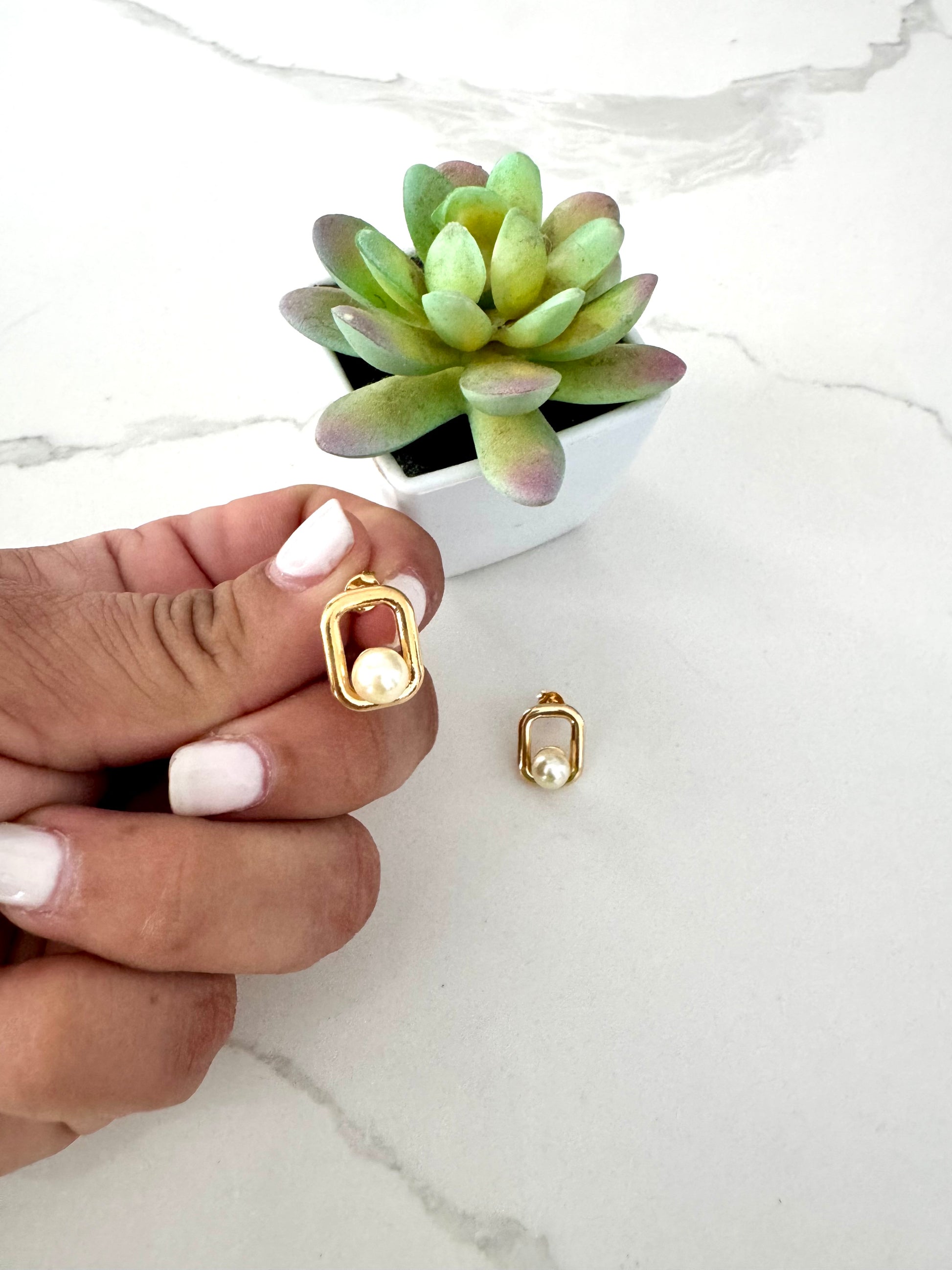 Agrega un toque de sofisticación a tu estilo con estos delicados aretes tipo stud. Su diseño rectangular en miniatura, realzado con una perla central, refleja elegancia, feminidad y buen gusto. Una pieza versátil y atemporal, perfecta para elevar cualquier look —desde el día a día hasta una ocasión especial.